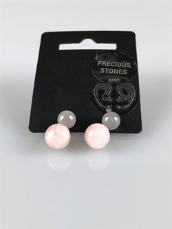 Specielle tre delt øreringe. Øreringene er guldbelagte og med to smukke sten i en støvet lilla- og lyserød farve.
